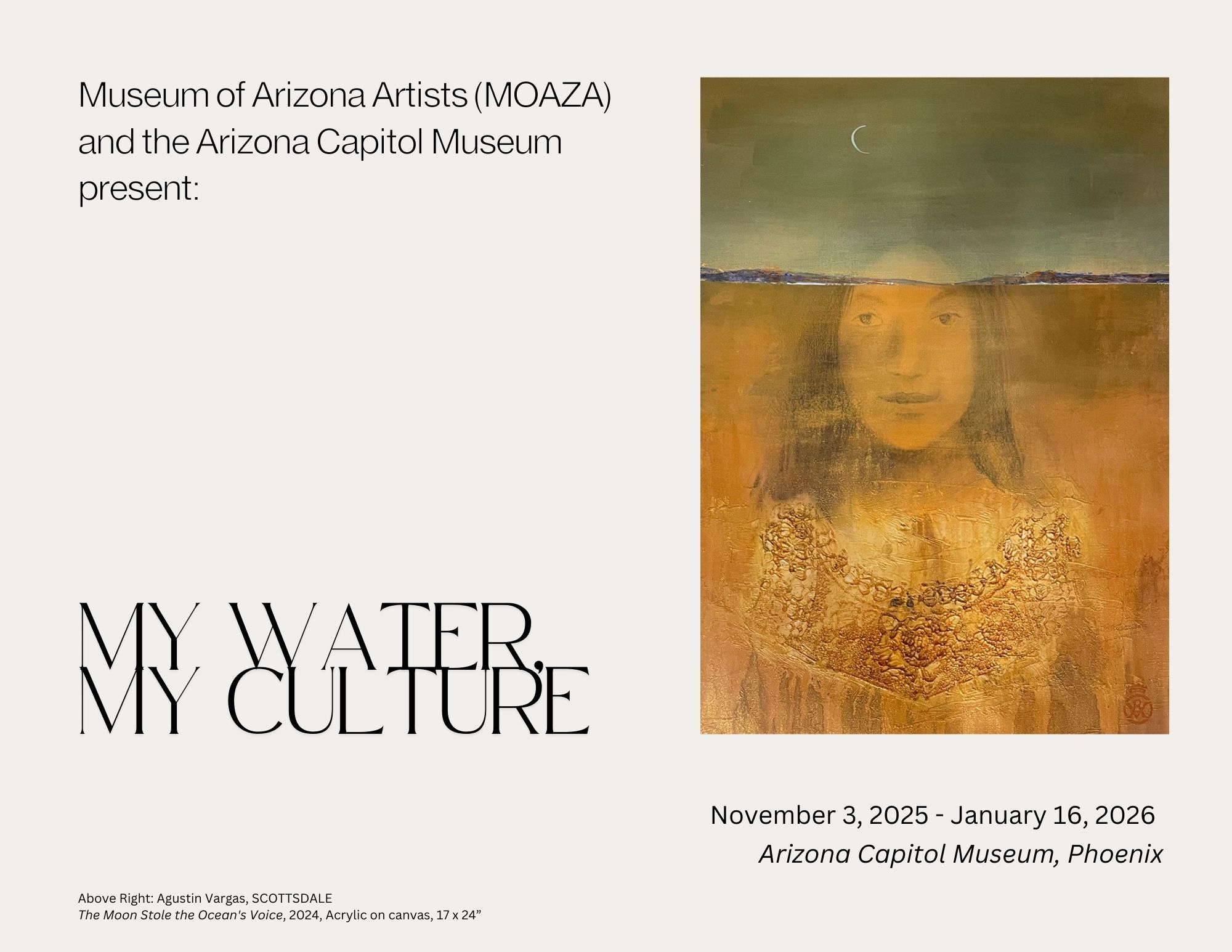 Arizona artists from diverse cultures exhibit works about water and the cultural values surrounding it in this debut of MOAZAโs first traveling exhibition.