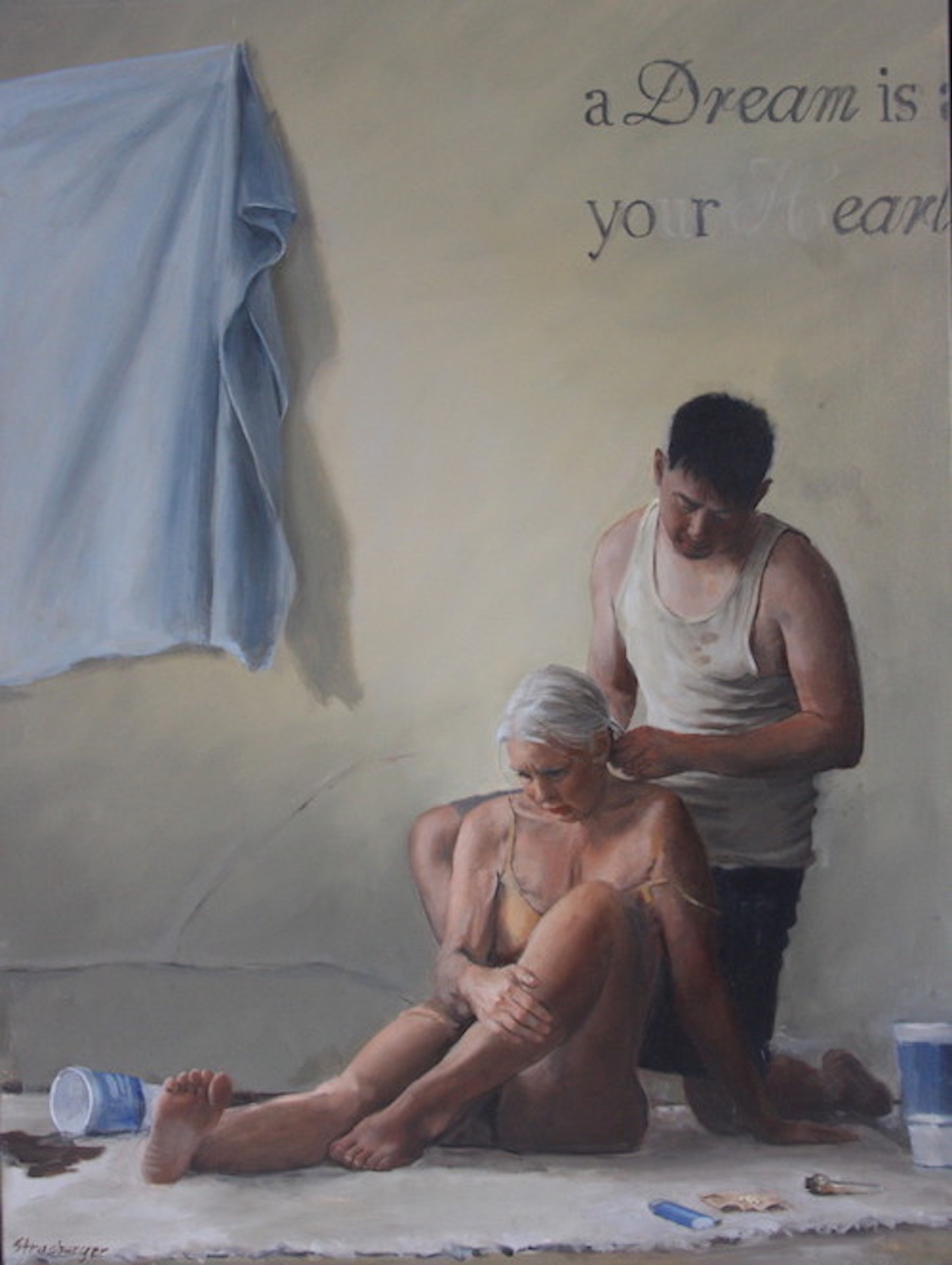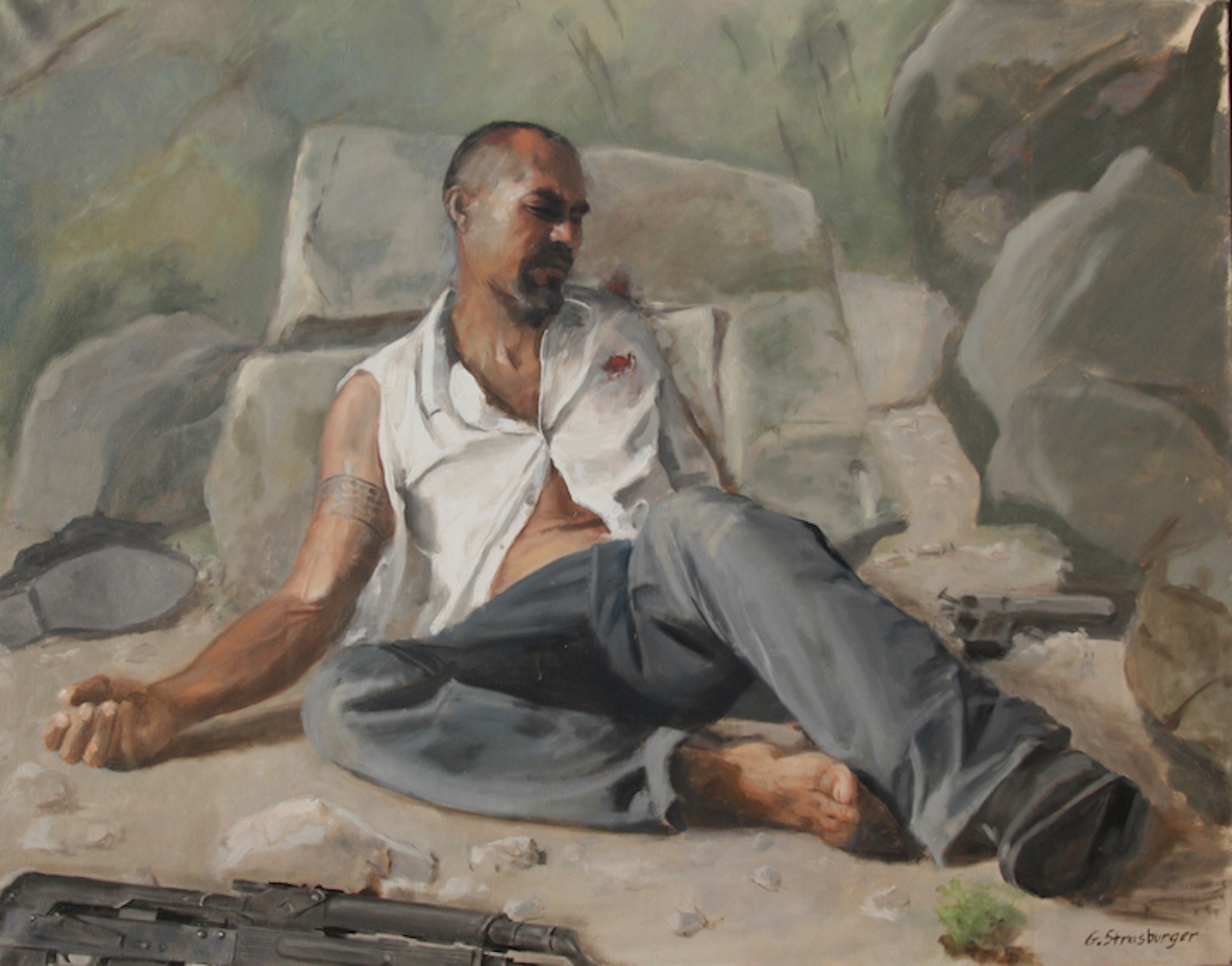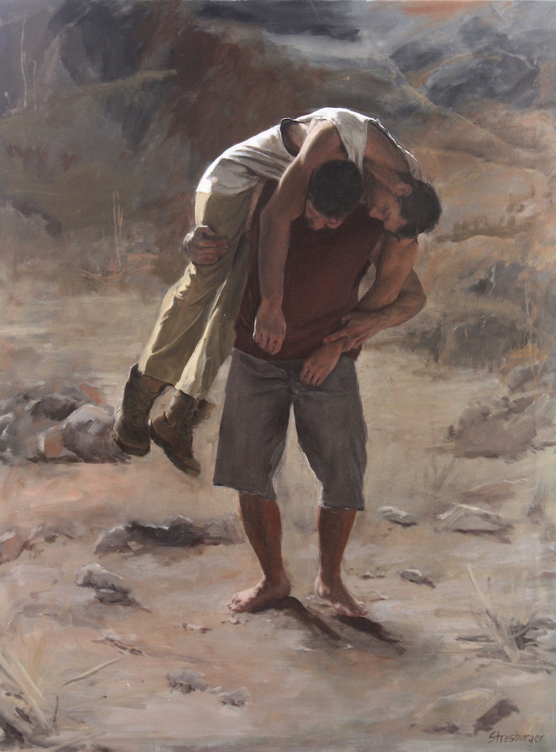 The figure has been a staple in the history of art ever since humans started expressing themselves pictorially. From the caves of Lascaux, France, 20,000 years ago and the petroglyphs in the desert southwest, exquisite Hellenistic marbles, to the present, with its varied visions of contemporary artists, the figure has been the foundation of the visual arts. All periods, from the Renaissance to the Dutch Masters, the Romantics to the New York Ashcan school used the figure as the most direct, clear, and cathartic form of expression. Go Figure! was a juried show, and the winner of Best of Show was George Strasburger of Tucson Arizona. We were amazed by his grasp of the anatomy of the human figure in space and light, coupled with his handling of contemporary issues through its depiction.